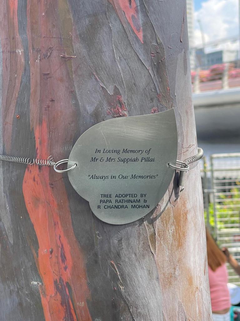 Partly to support the Esplanade and him and to set up a small memorial for my grandparents and my father, I took up 2 trees in my name and that of my mother.