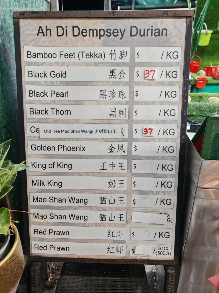 The durians at Dempsey were disappointing. Expensive and the quality was not quite there. I was shocked that they were charging $37 a kilo for rather mediocre durians. We both agreed that this was our last time eating durians there!