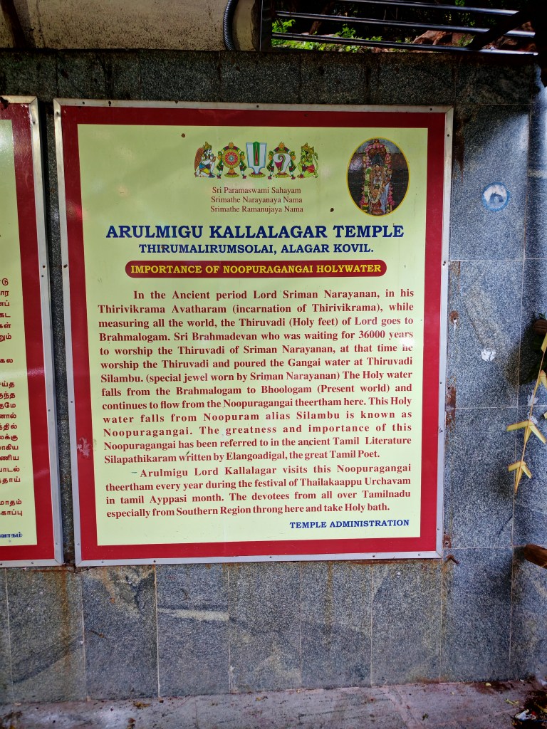 After performing a dharshan, the highlight of the visit to this temple is the Noopuragangai Holy water.