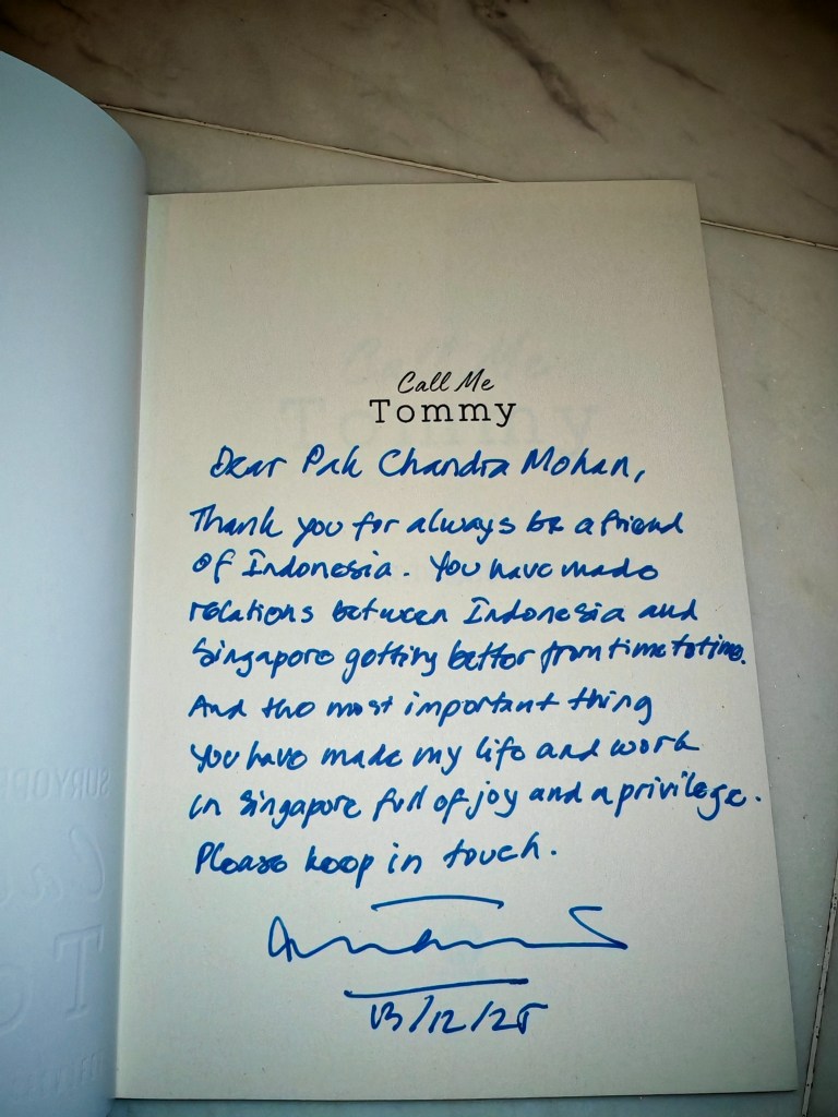 Pak Tommy has also written a book, entitled Call me Tommy, and he presented me with an autographed copy. That was very kind of him and he said some very nice things in his farewell speech.