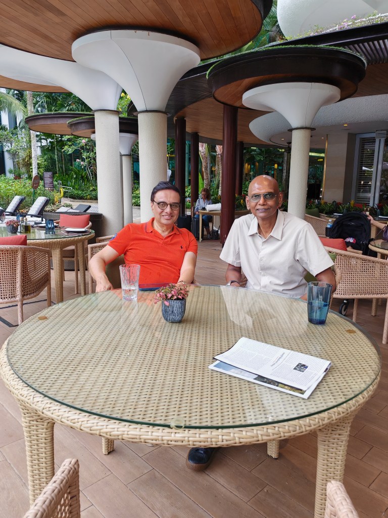 Spent a pleasant afternoon with Prasoon yesterday at the Shangri La, sipping coconut water.
